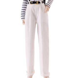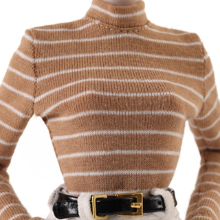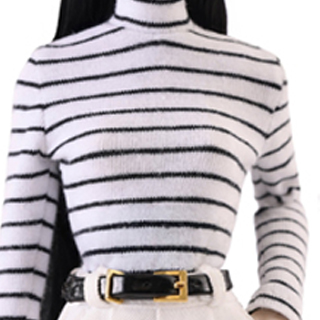 White-striped long-sleeved turtleneck T-shirt