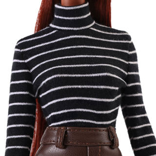Black-striped long-sleeved turtleneck T-shirt